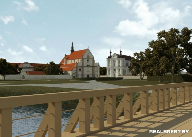 Вид на Бернардинскую площадь со стороны Холмских ворот. Фрагмент проекта регенерации исторической застройки Бреста, автор И. Лавровская. (3D модель при участии Д. Лавровского, Е.Дайнеко, А.Вантуха и А.Лари)