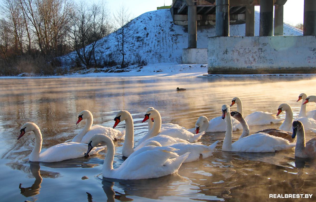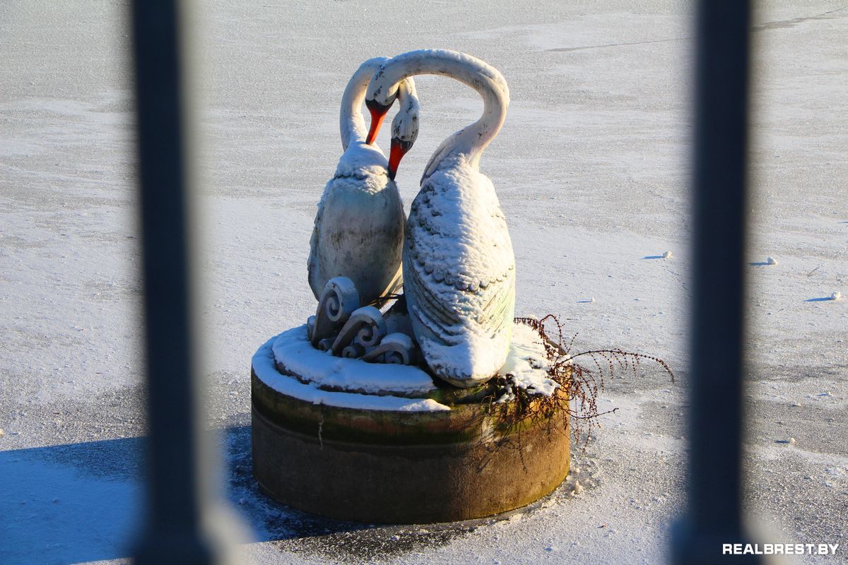 В Брест пришли морозы и наша местная река, на берегах которой постепенно разрастается современный город, стала замерзать.