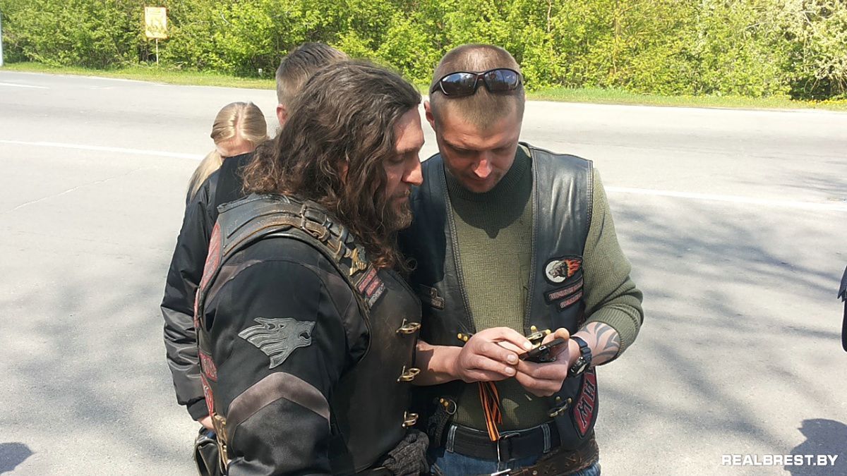 Какие-то четыре байкера нарушили утренние беседы российских и белорусских журналистов про женщин и взрывающееся забытое во время пьянки пиво в морозилке. Вот блин, это были наши, с единичкой на белорусских номерах. Стали скромно, в стороне, но заставили журналистов переругаться между собой, когда те дергали свои штативы и камеры в поисках лучшей позиции для съемок.