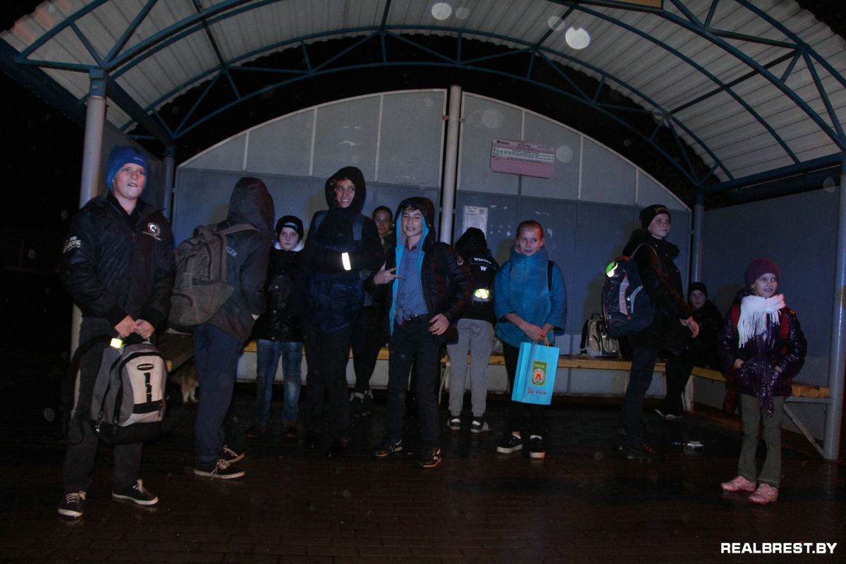 Уже почти заканчивая моё участие в рейде, мы заметили детвору на остановке общественного транспорта, которая возвращалась со школы в свои населенные пункты. Сергей Валерьевич предложил развернуться, чтобы узнать сколько ребят одели фликеры, а сколько проигнорировали это требование. Я сделал фотографию из машины, и решил из неё не выходить в проливной дождь.