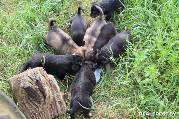 Через несколько дней после встречи с худущей собакой, я услышал пронизывающие крики, попавшего в беду зверя. Сев на велосипед, я отправился на поиски взывающих к помощи. Кривая проселочная дорожка привела к дому соседа. На заднем дворе, где-то среди старых досок и тракторных колес выполз один щенок, потом второй, третий … восьмой.