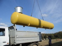 Выкапываем траншею, в ней ставим фундаментную плиту, на нее - емкость. Все это жестко связывают, прокладывают газопровод, на емкость ставят редукционный блок, выравнивающий давление. Газгольдер и трубы засыпают песком, на поверхности (5-7 см над землей) - только крышка люка. По нормативам газгольдер должен быть удален на 10 метров от жилых зданий, на 8 метров - от нежилых, на 2 метра - от заборов, колодцев и скважин.