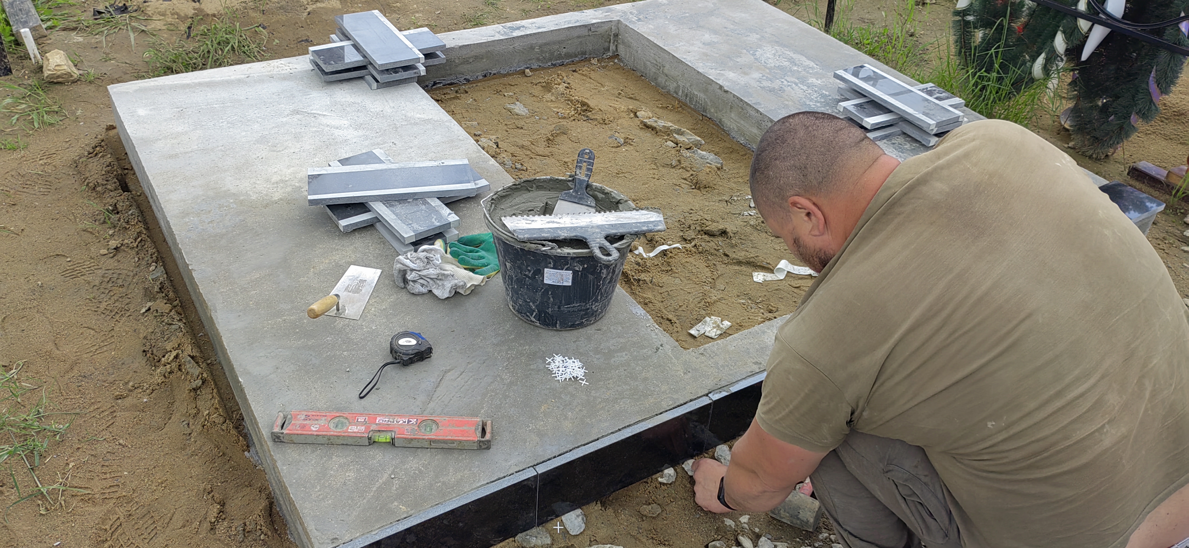 После полного высыхания фундамента на него устанавливаются подставка (тумба) и горизонтальная надгробная плита, если она предусмотрена проектом. Все элементы выравниваются по уровню, а между ними прокладывается герметик или цементно-клеевая смесь. Качество этого этапа напрямую влияет на устойчивость конструкции.