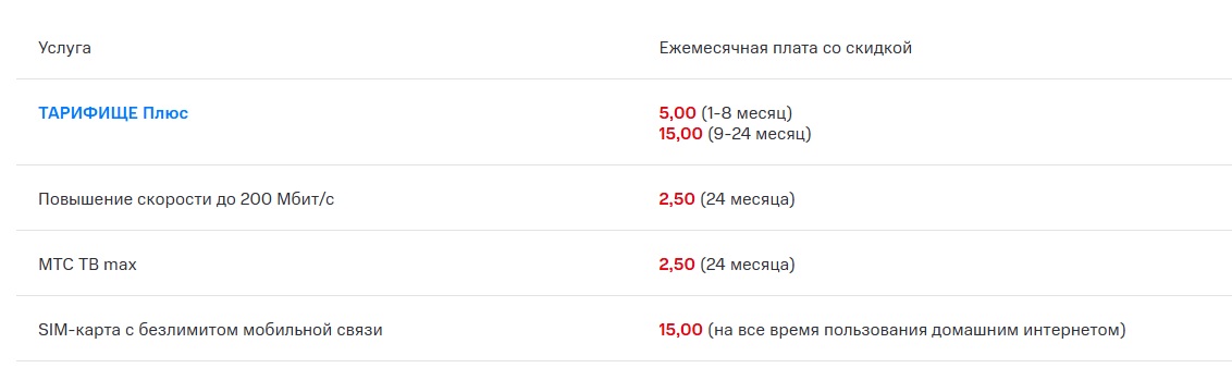 К базовому пакету легко добавить опции: скорость до 200 Мбит/с, МТС ТВ с более чем 120 каналами и до 3-х SIM-карт с безлимитной мобильной связью. Все оборудование — роутер и ТВ-приставка — обойдется в символическую стоимость по 1 рублю.