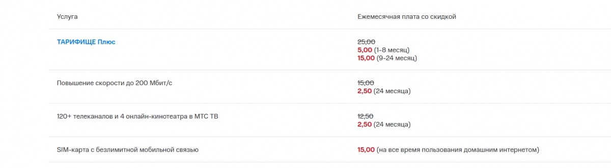 Услуга-конструктор позволяет собрать индивидуальный пакет из подходящих опций: увеличить скорость вплоть до 500 Мбит/с, добавить ТВ-подписку с более чем 120 каналами и 4 онлайн-кинотеатрами, получить до 3-х номеров с безлимитной мобильной связью и скидкой 100% на раздачу трафика, подключить антивирусное решение Kaspersky.