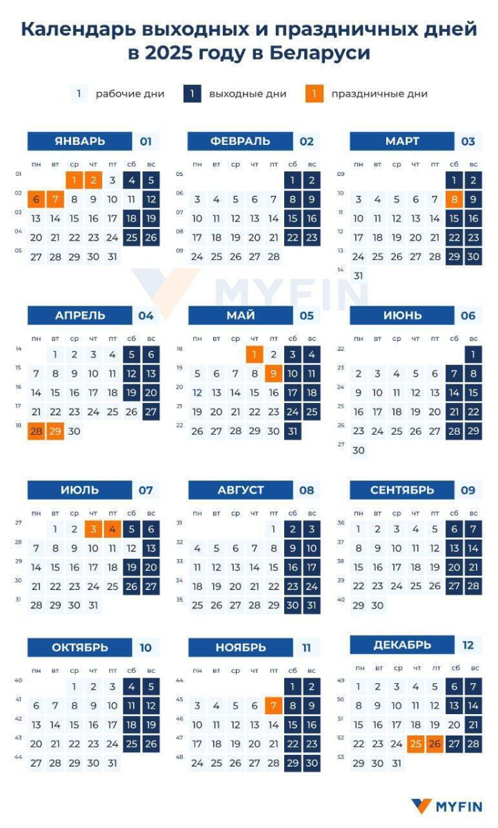 День Независимости Республики Беларусь (День Республики) 3 июля приходится на четверг, это дополнительный выходной. Рабочий день 4 июля переносится на субботу 12 июля. Соответственно, во второй летний месяц будем отдыхать четыре дня подряд: 3, 4, 5 и 6 числа. После этого – шестидневная рабочая неделя. Следующие большие выходные – в ноябре и декабре.