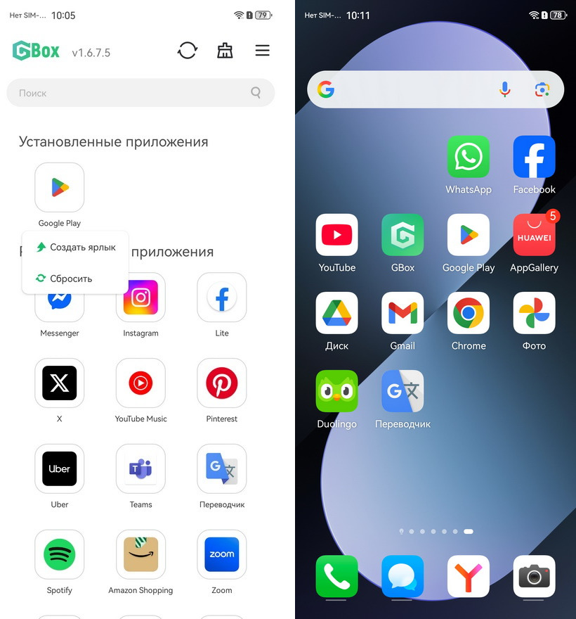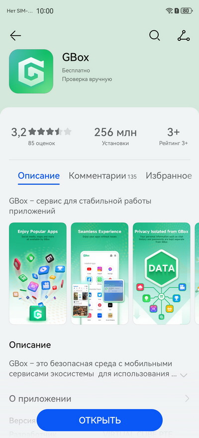 Приложение GBox (ДжиБокс) функционирует как эмулятор, создающий на устройстве виртуальную среду, которая имитирует стандартную Android-систему с интегрированными сервисами Google. Оно дублирует ключевые возможности микроДжи, предоставляя авторизацию в аккаунте и работу уведомлений, но при этом добавляет важную функцию: прямой доступ к магазину Google Play. Это позволяет загружать любые приложения, отсутствующие в каталоге Huawei AppGallery. Для пользователя GBox (ДжиБокс) выглядит как самостоятельная программа, которая отображается отдельной иконкой на рабочем столе.