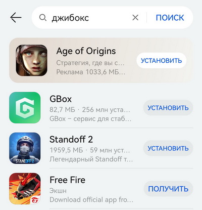 2. Введите в поиске «джибокс» (система поймет, о чем речь), нажмите «Установить».