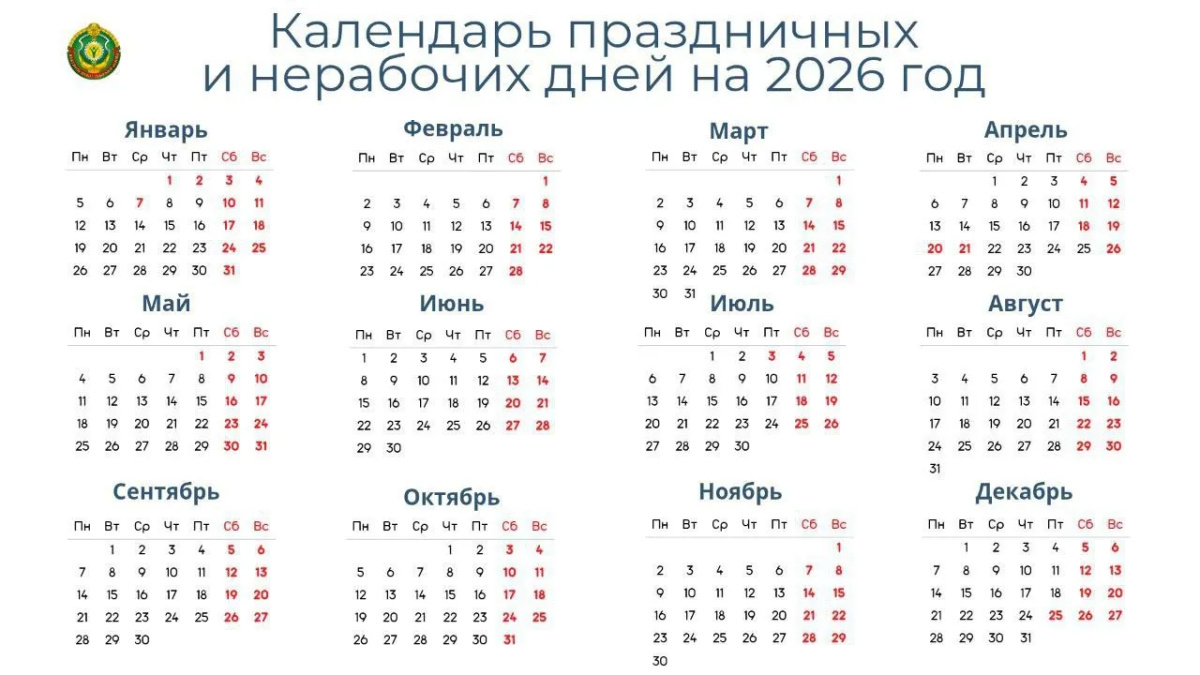 Нерабочими днями в 2026 году являются: