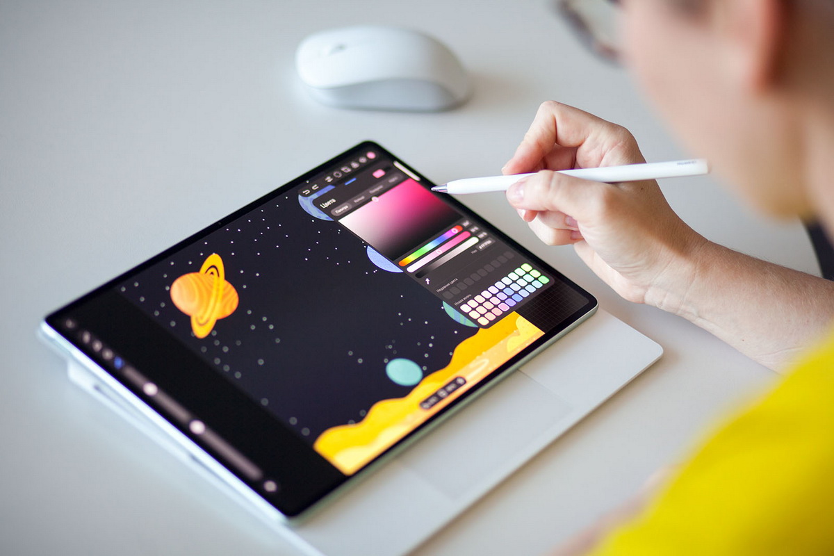 У Huawei MatePad Pro 12,2’’ 2025 – большой флагманский Тандем OLED-экран с 2,8K-разрешением, поддержкой 1,07 млрд оттенков и охватом цветового пространства P3, который с высокой точностью передает цвета. Это позволяет использовать его для рисования на профессиональном уровне. И чтобы пользователям не нужно было искать соответствующую программу, Huawei разработала приложение для рисования GoPaint.