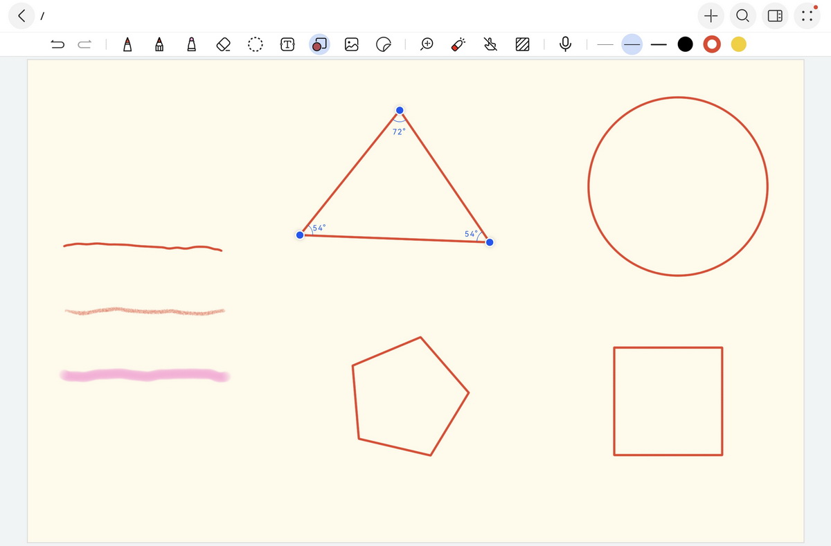 Что нас впечатлило – можно рисовать ровные фигуры. Для этого достаточно лишь наметить общие контуры нужной с помощью отдельного инструмента – и небрежный набросок превратится в ровный круг, квадрат или треугольник. Причем пока на фигуре активны синие точки, можно подкорректировать ее размер или форму.