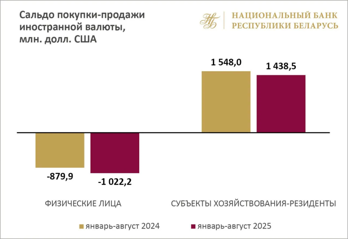 В целом за январь - август текущего года продажа физлицами наличной и безналичной иностранной валюты превысила ее покупку на $1,022 млрд.