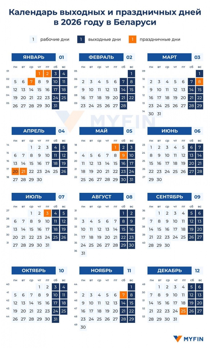 Нынешней весной белорусов ждут недели с тремя и с четырьмя выходными.