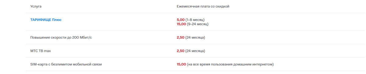 Абоненты могут собрать индивидуальный пакет услуг без переплаты за лишние опции. Базовый интернет-доступ на скорости до 100 Мбит/с можно дополнить выгодными предложениями: увеличить скорость до 200 Мбит/с, активировать более 120 телеканалов в МТС ТВ, а также подключить до 3-х SIM-карт с безлимитным мобильным интернетом и звонками во все сети Беларуси.