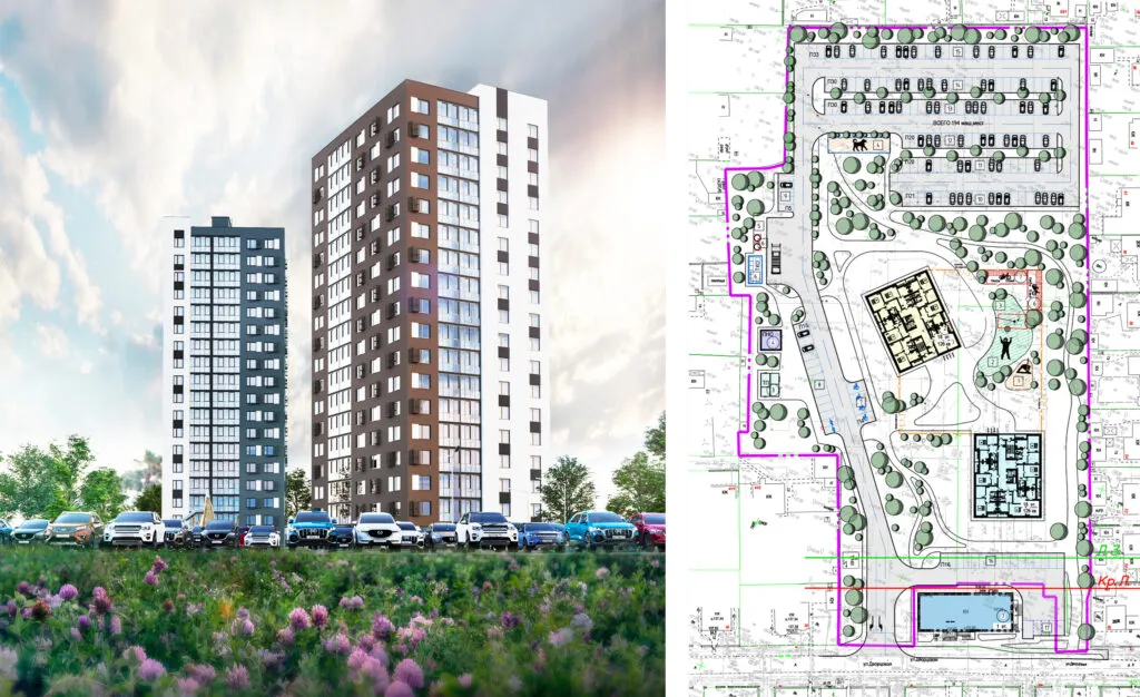 На земельном участке предусмотрено размещение двух 18-ти этажных многоквартирных жилых домов, с выполнением работ по благоустройству прилегающей территории и созданием благоприятной среды обитания для жителей данного района. Концепцией предусматривается размещение порядка 250 квартир в данной жилой группе.