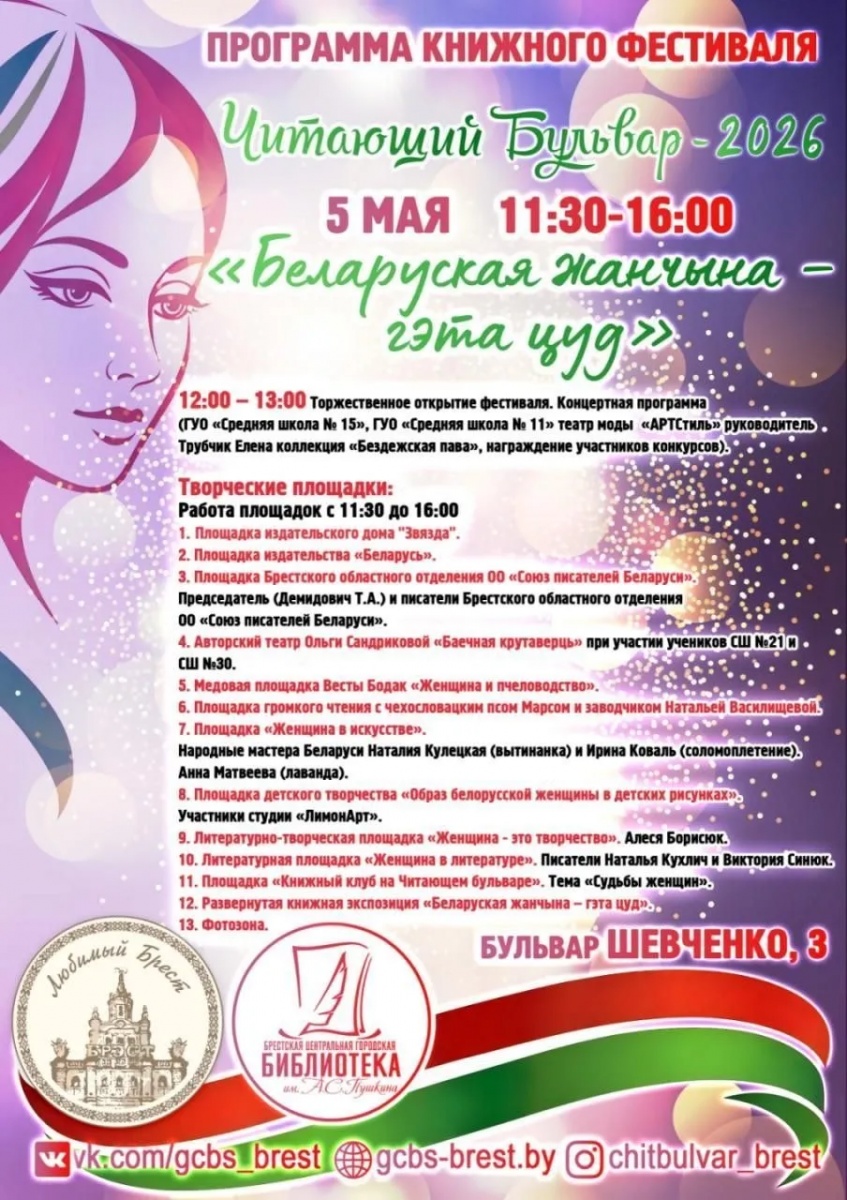 Торжественное открытие «Читающего бульвара-2026» пройдет с 12.00 до 13.00 с участием талантливых учащихся СШ № 15 и СШ 11 г. Бреста.