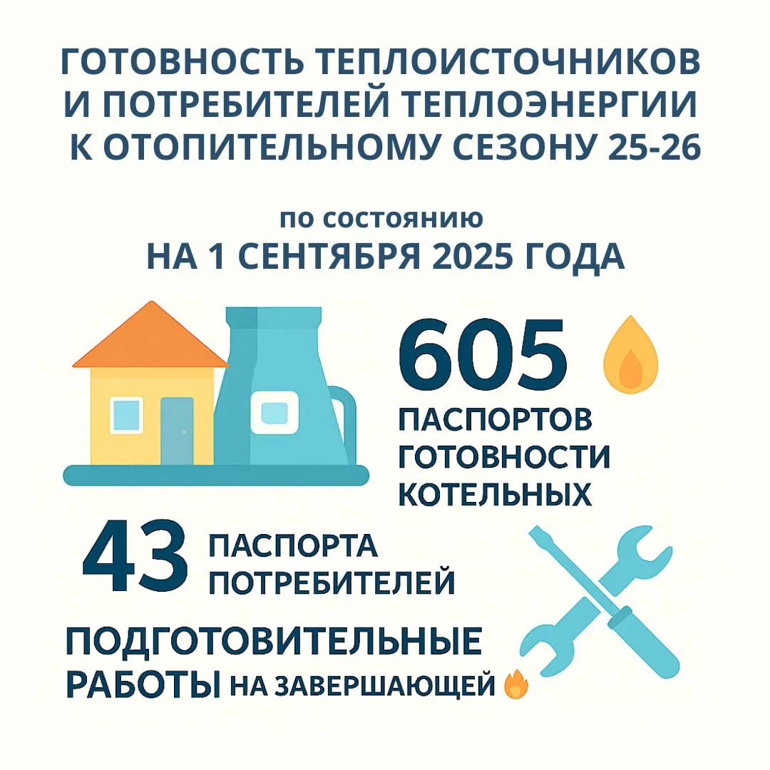 Подготовительные работы к отопительному периоду находятся на завершающей стадии. Все мероприятия должны быть завершены до 1 октября 2025 года.