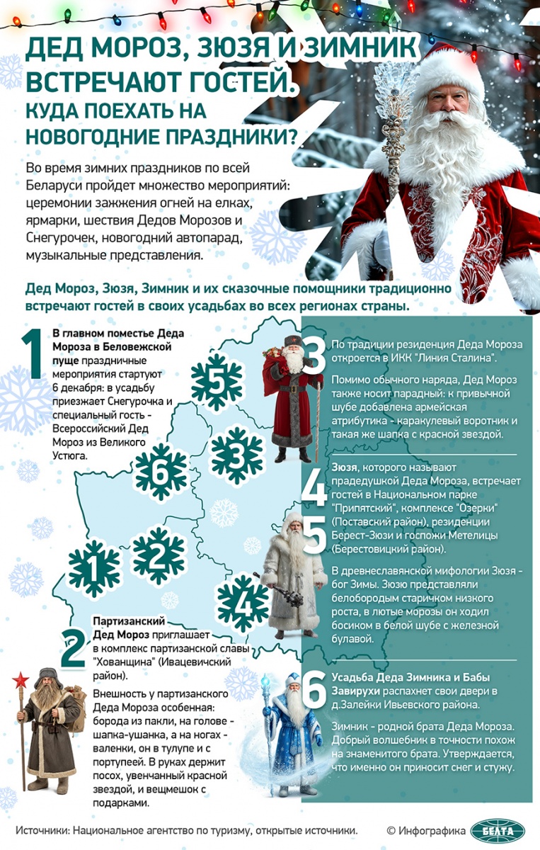 Поместье белорусского Деда Мороза в Беловежской пуще открылось 16 декабря 2003 года. За эти годы оно стало туристическим брендом нашей страны, там побывали более 2 млн гостей. Ежегодно сказочную усадьбу посещают тысячи белорусов и иностранцев. На территории поместья расположено множество локаций, где можно загадать желания, окунуться в беззаботное детство, поверить в чудеса.
