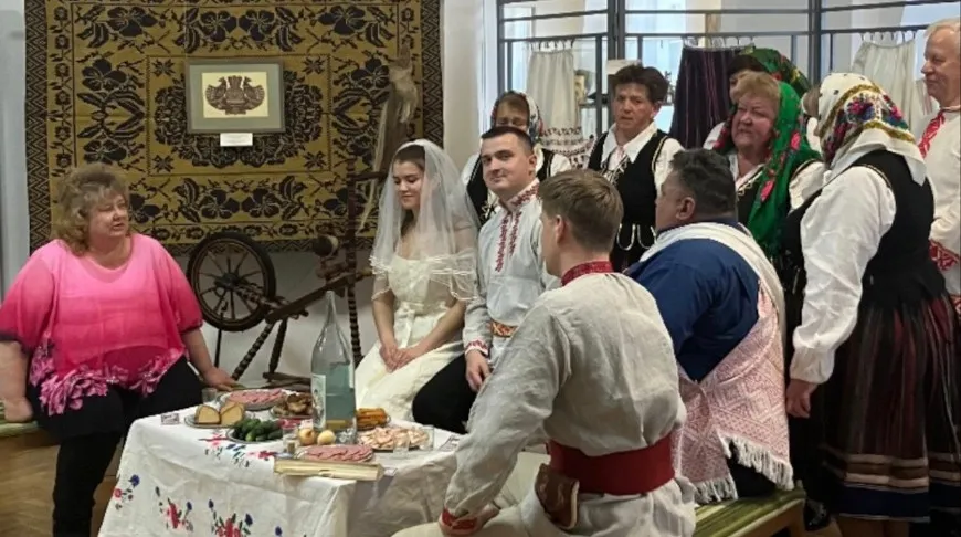 В филиале Брестского областного краеведческого музея - "Художественный музей" 23 апреля фольклорный коллектив "Живая вода" продемонстрировал уникальный свадебный обряд "Сыра", передает корреспондент БЕЛТА.