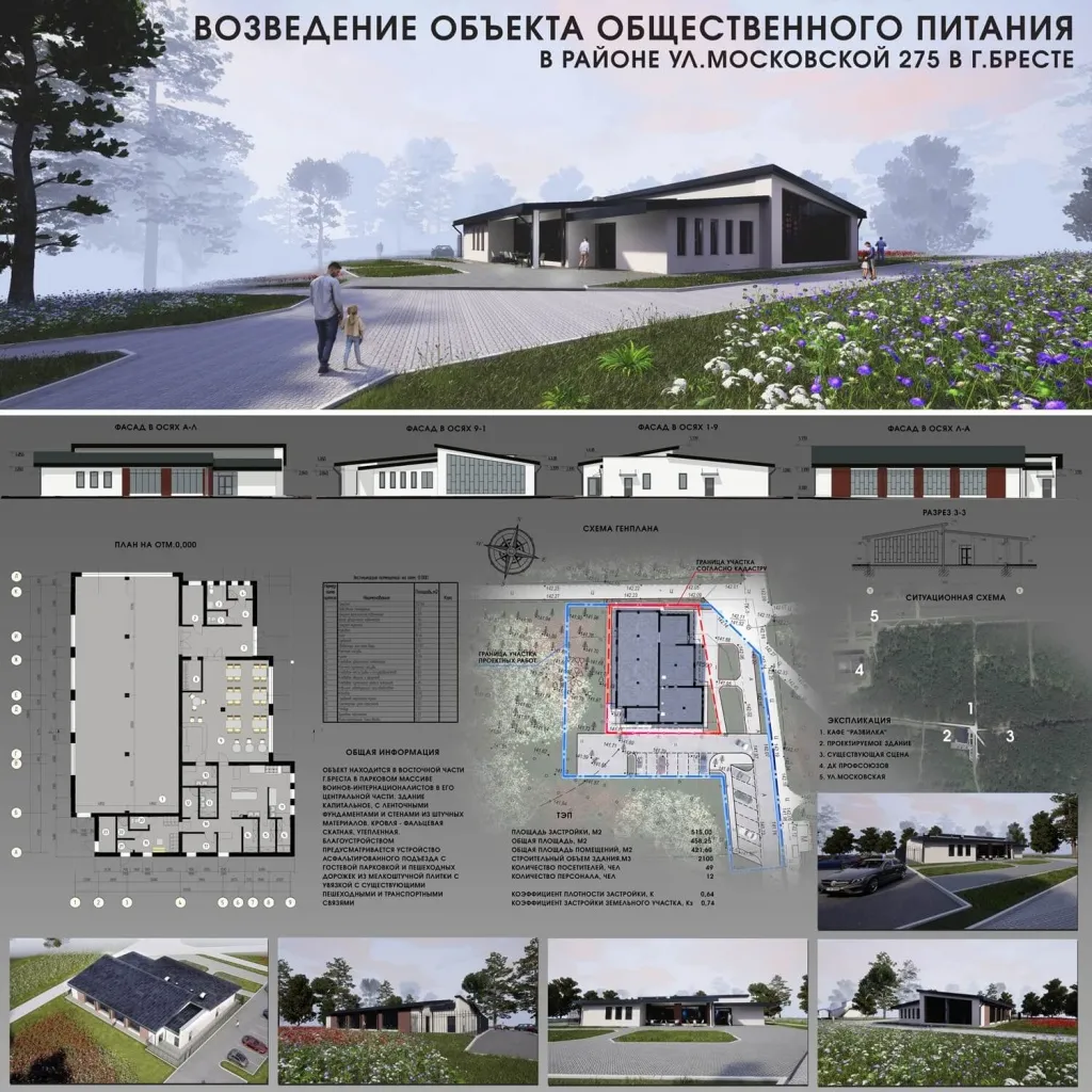Планируется построить отдельно-стоящее здание под кафе с закрытой зоной для проведения музыкальных мероприятий. Также предусмотрена парковка и благоустройство прилегающей территории.