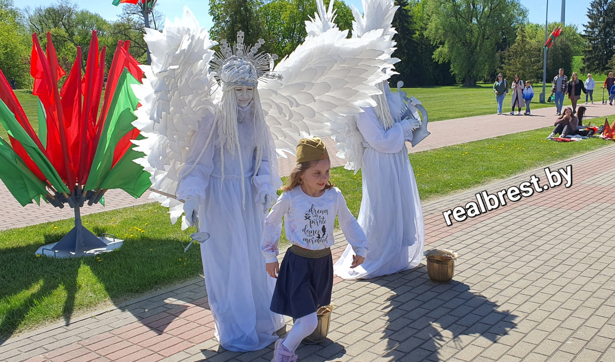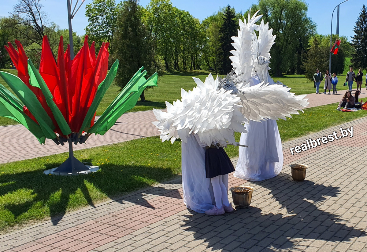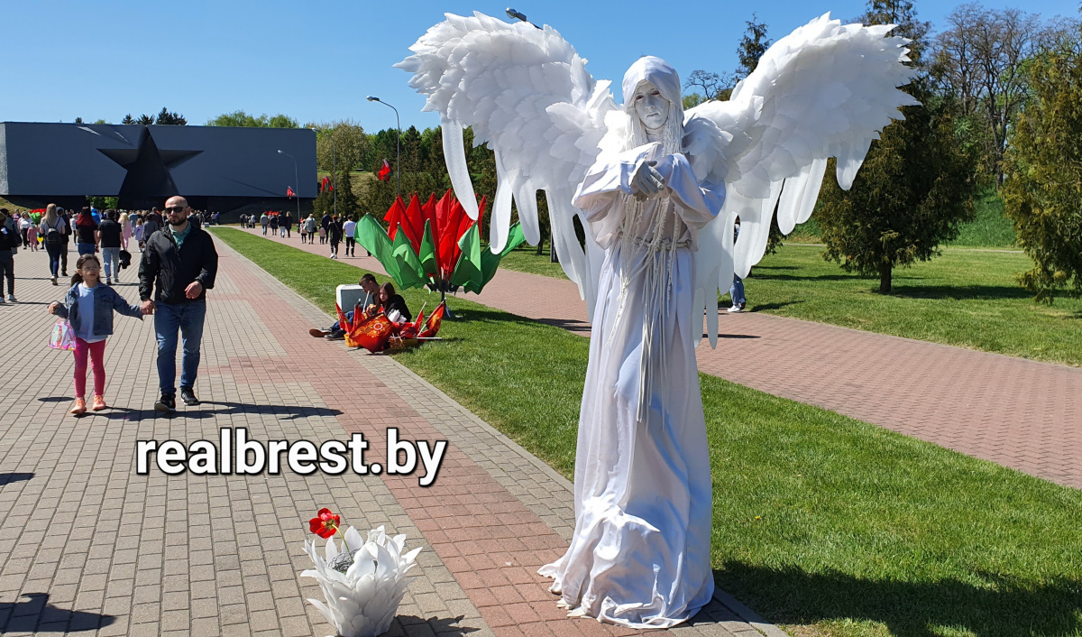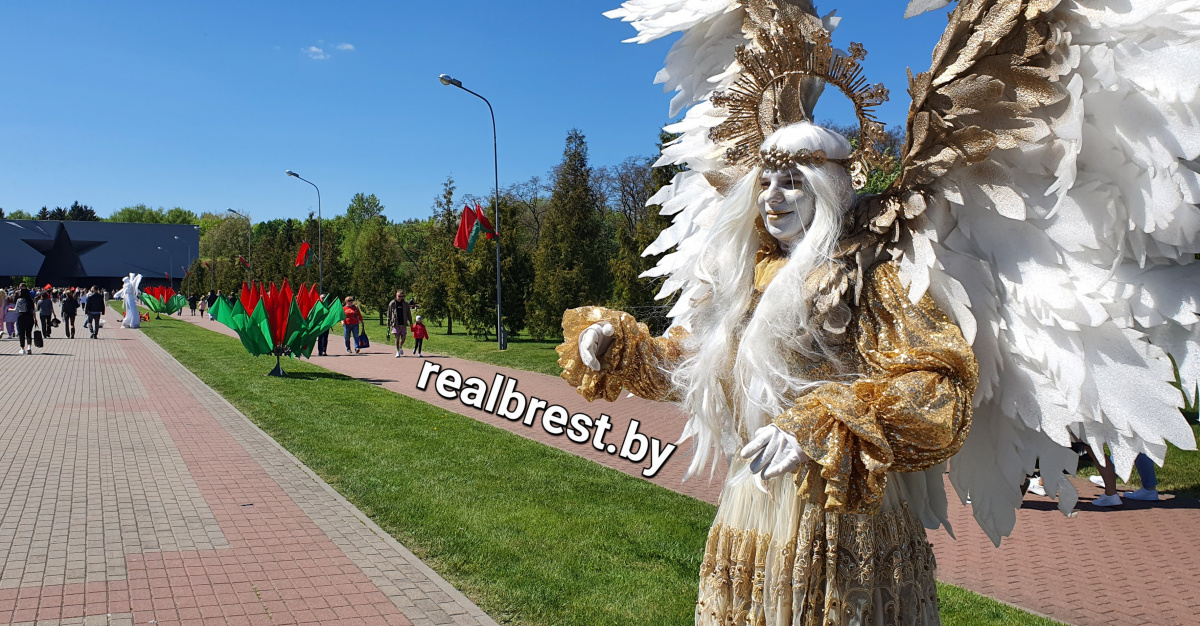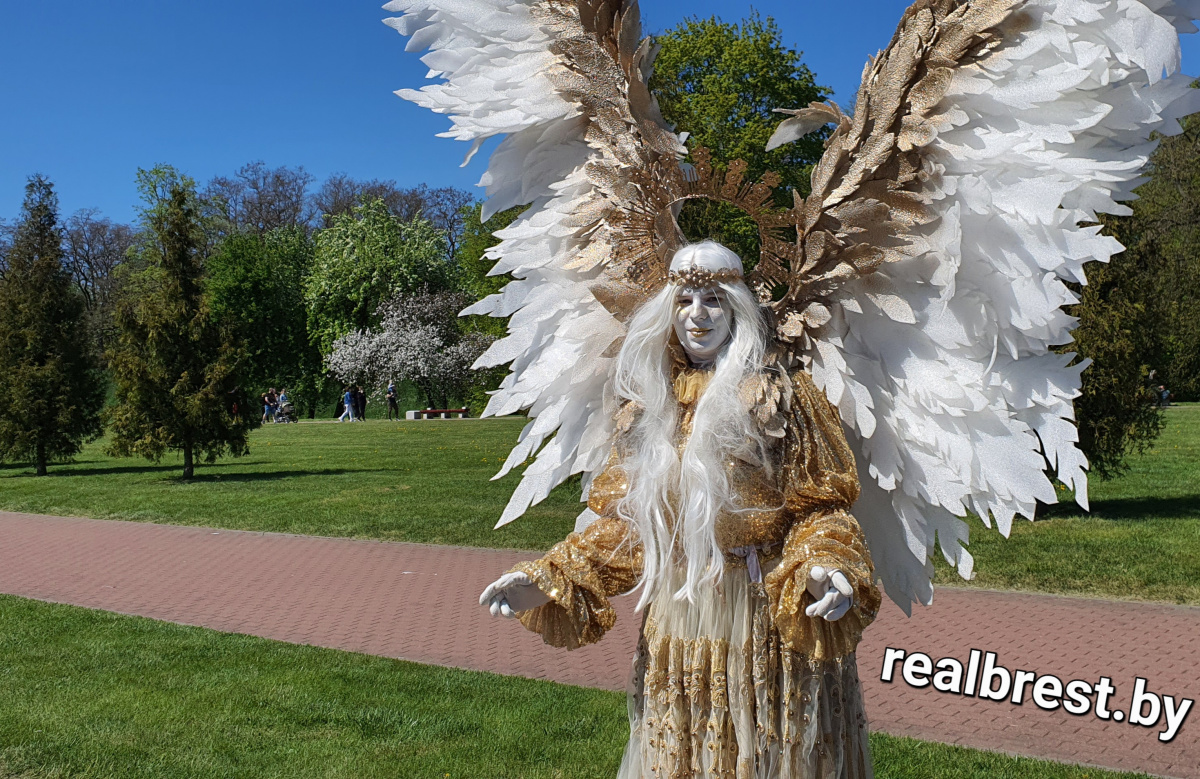 Многие брестчане уже успели познакомиться с новыми живыми скульптурами на пешеходной улице Советская – это галантные и очень деликатные «Маленький принц» и «Человек дождя», «Ангел» и «Человек – фонарь» и иные образы. Сегодня, 9 мая, «Ангел» были замечены вблизи Брестской крепости.