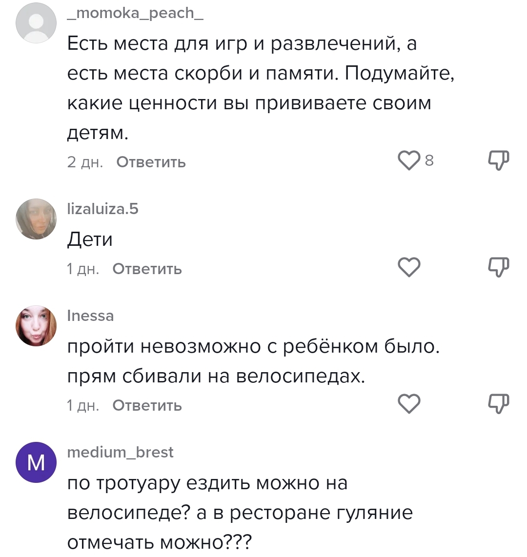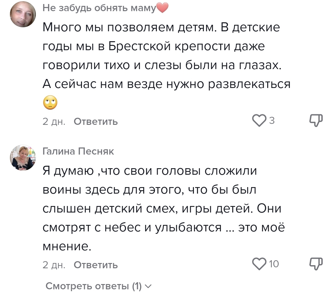 Одни считают, что это кладбище и даже говорить здесь нужно тихо. Другие считают, что именно это и защищали павшие здесь бойцы – смех детей и всё связанное с мирной жизнью.
