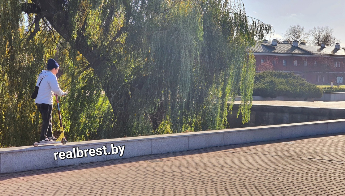 Во время очередного посещения Брестской крепости в объектив «Реального Бреста» успел попасть лишь один самокатчик из группы своих товарищей, проделавших до него аналогичные трюки.
