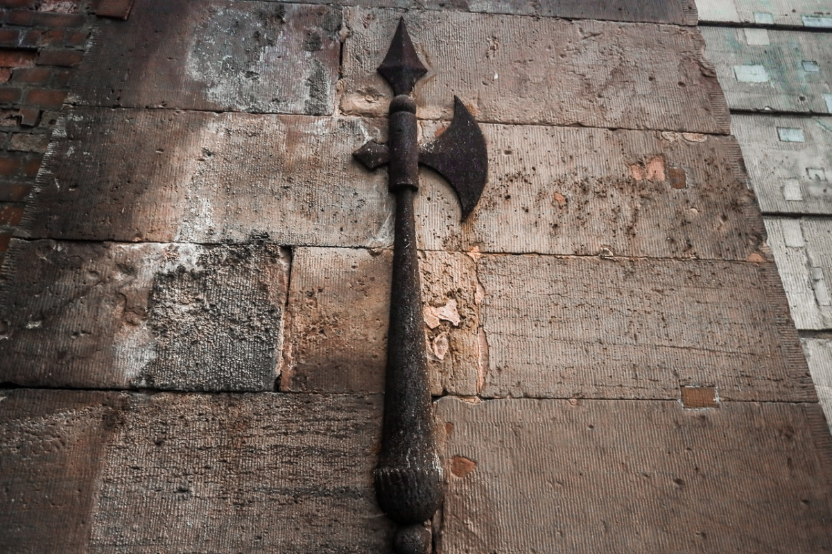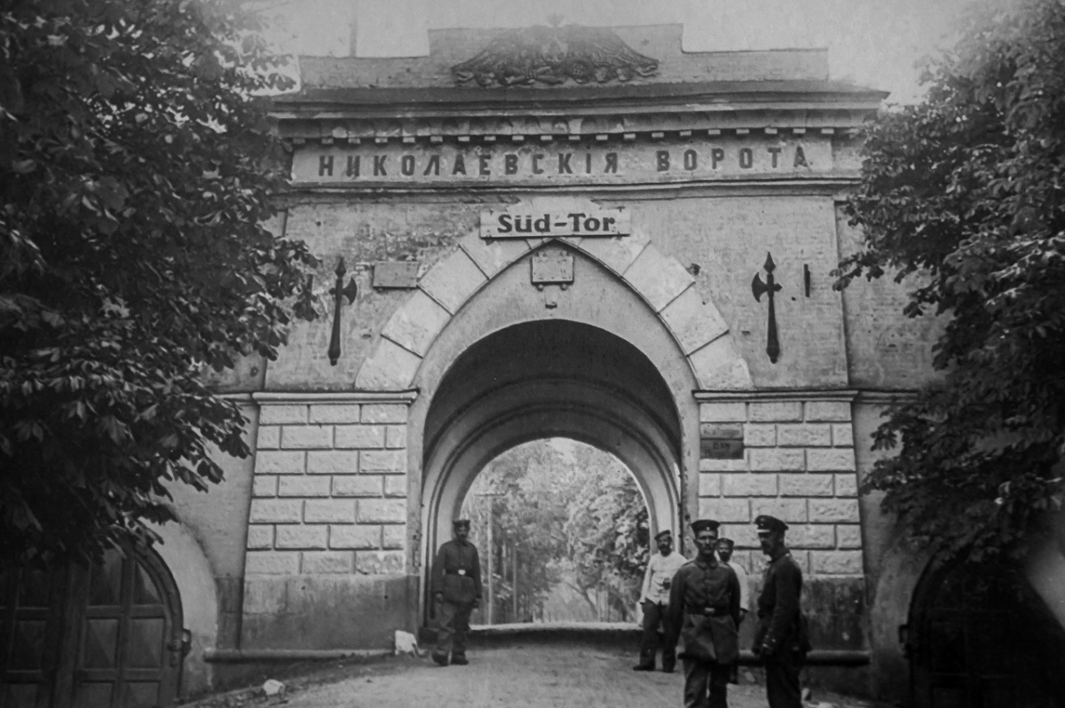 На снимках времен Первой Мировой войны алебарды на Южных воротах Брестской крепости присутствуют, а чуть позже, по неизвестной причине, были демонтированы.