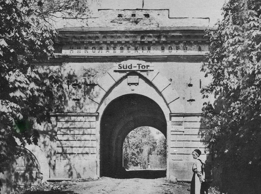 Когда-то Николаевские ворота, они же Южные, были декорированы двумя «топориками». Точнее - алебардами.