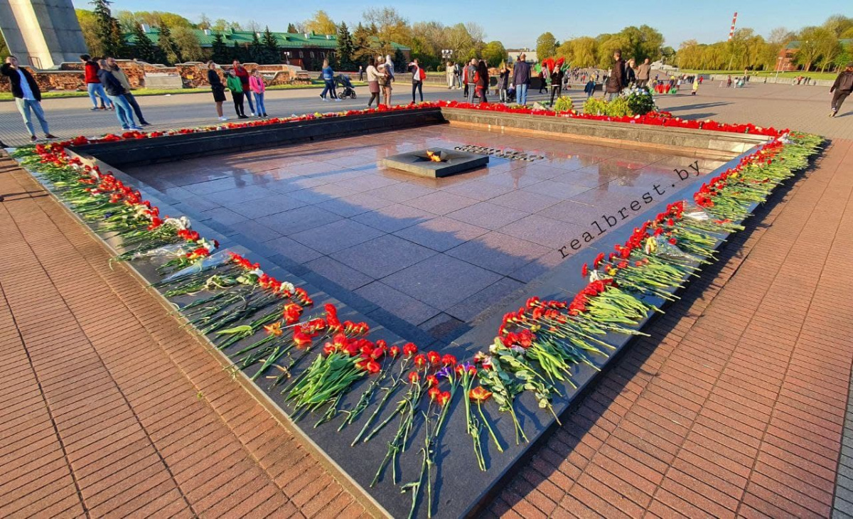 Главная площадка торжеств - мемориальный комплекс "Брестская крепость-герой" - в течение больших праздничных майских выходных приняла большое количество людей, многие из которых приходили с цветами для возложения к вечному огню.