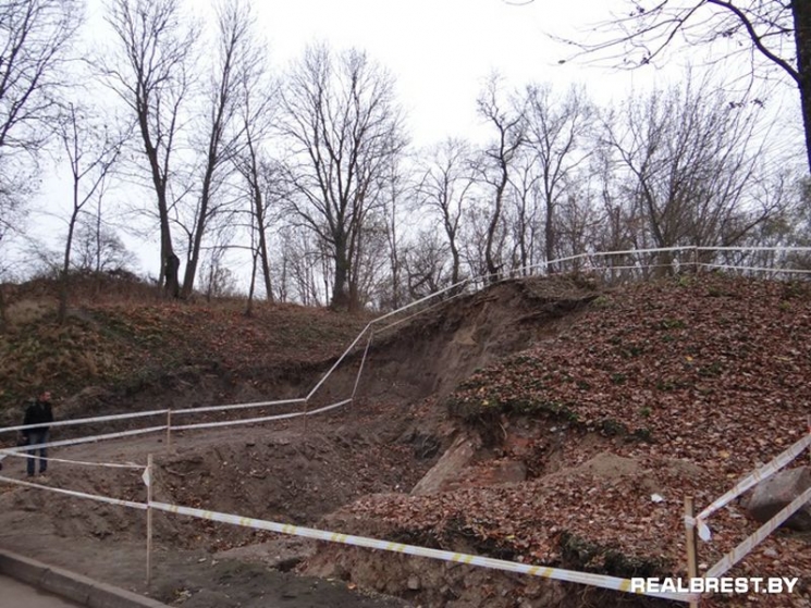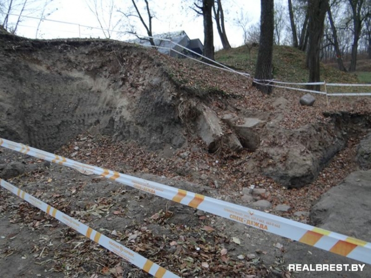 Напомним, что раскопки, которые велись здесь на протяжении около десяти дней в конце сентября – начале октября, были неожиданно прерваны. Вопросы у многих специалистов вызывало применение тяжелой техники: экскаватора и тракторов. Руководил раскопками первооткрыватель древнего поселения «Берестье» Петр Лысенко. Археологи надеялись найти фундамент Берестейского замка. Но отрытую каменную кладку высотой 180 см сам Лысенко считает подпорной стенкой, не фундаментом.