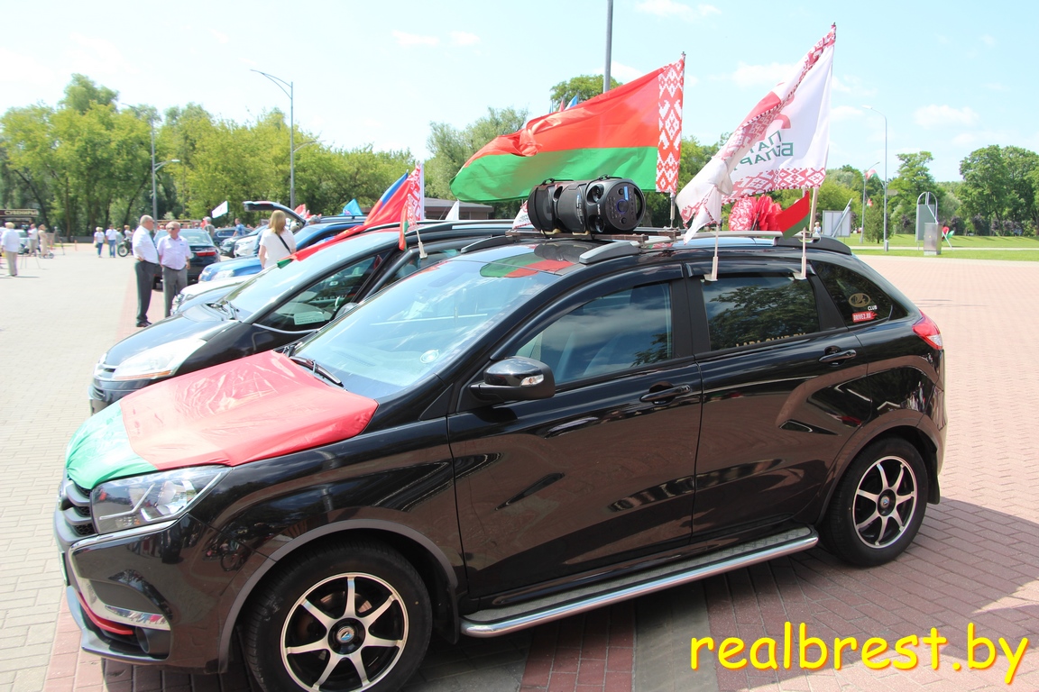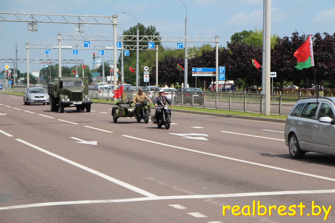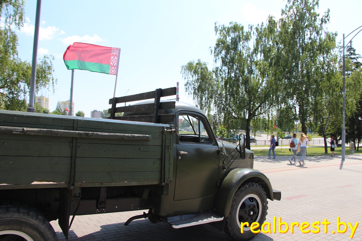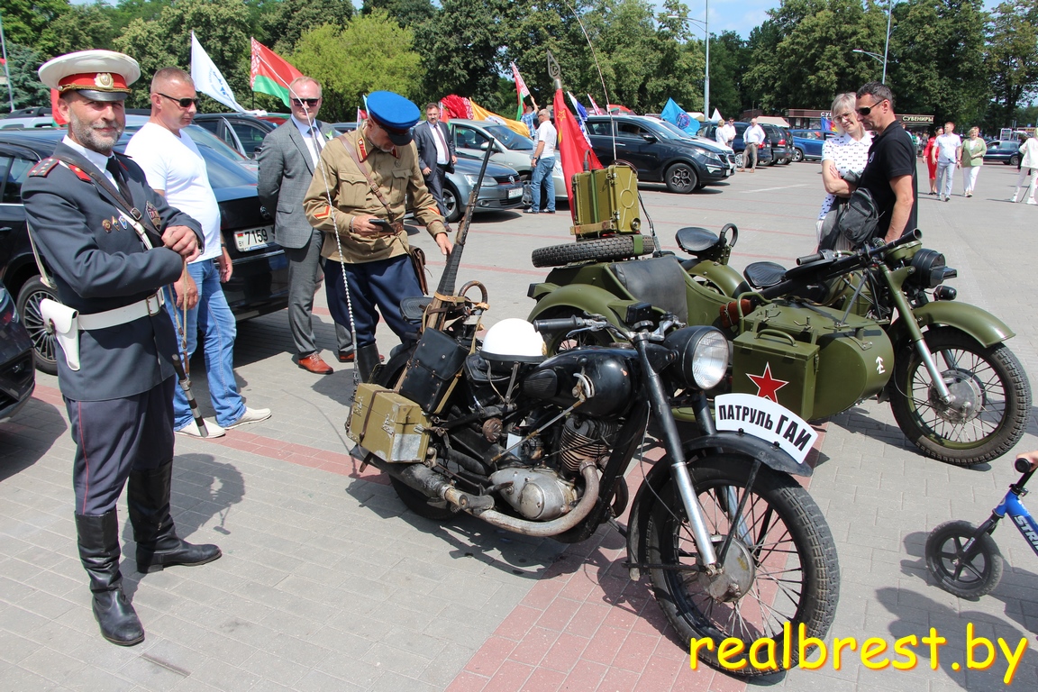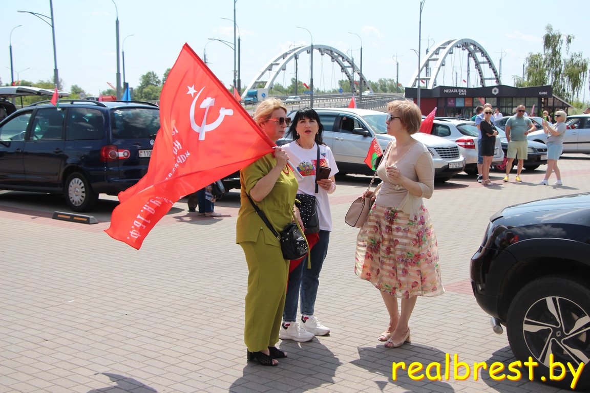 В полдень от стен легендарной цитадели стартовал автопробег к уникальному музею под открытым небом в пригородном поселке Мухавец "Аллея памяти", где собраны возвращенные из Европы демонтированные памятники погибшим на польской территории воинам Красной армии.