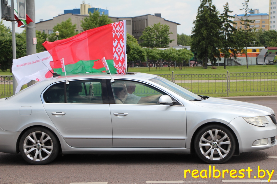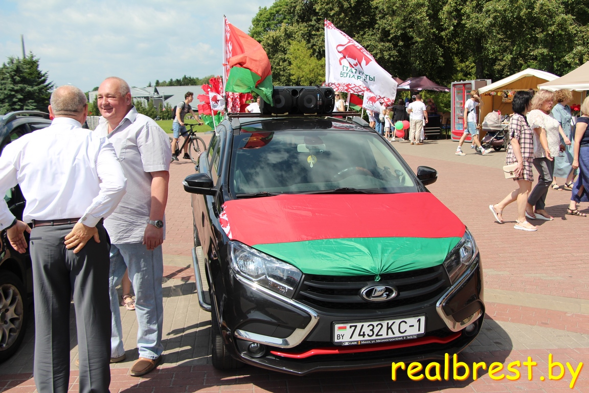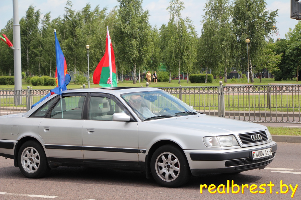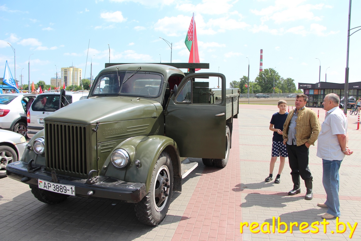 В полдень от стен легендарной цитадели стартовал автопробег к уникальному музею под открытым небом в пригородном поселке Мухавец "Аллея памяти", где собраны возвращенные из Европы демонтированные памятники погибшим на польской территории воинам Красной армии.