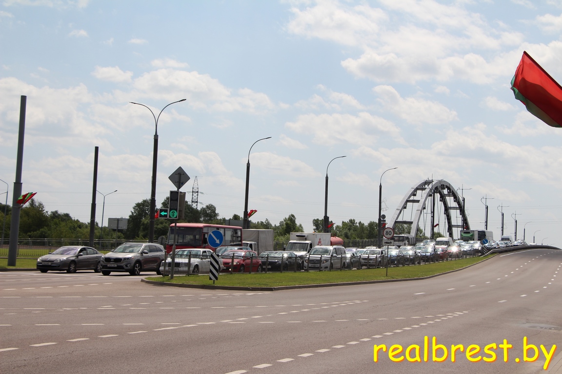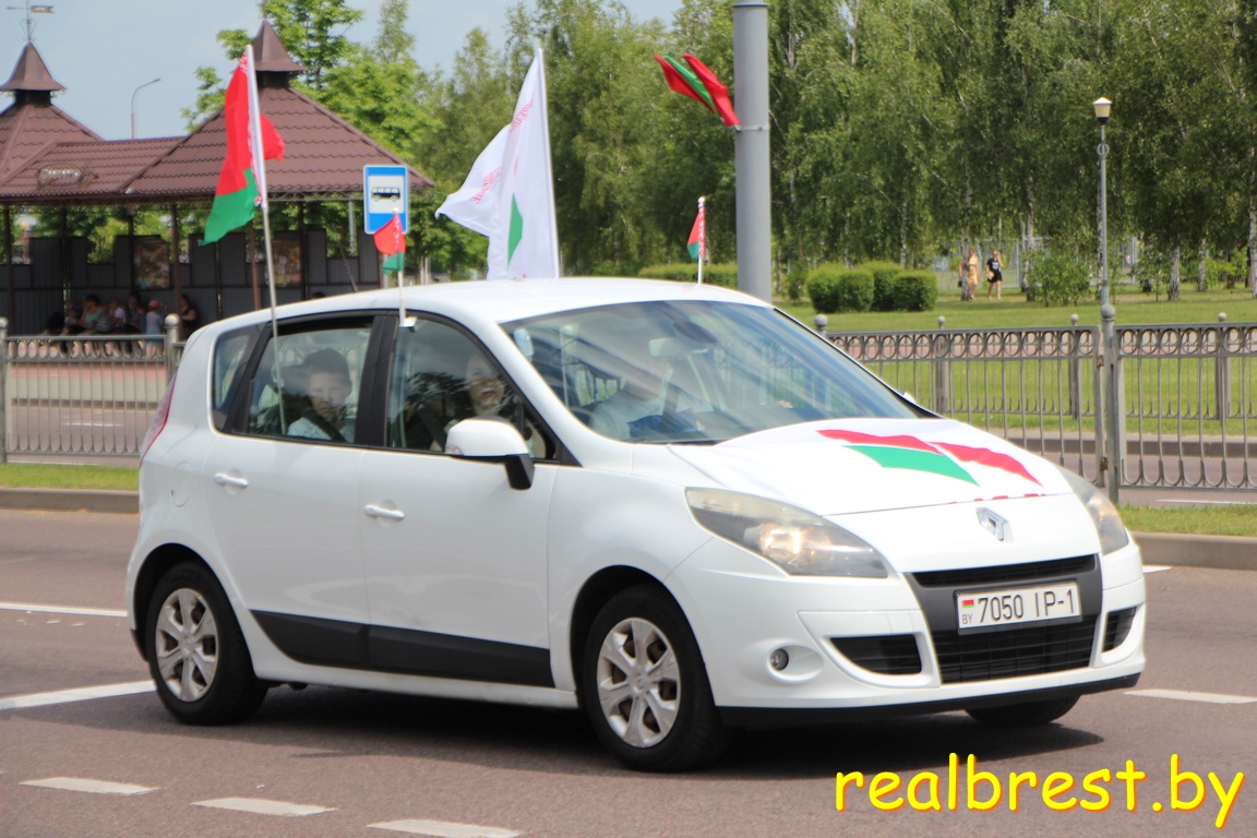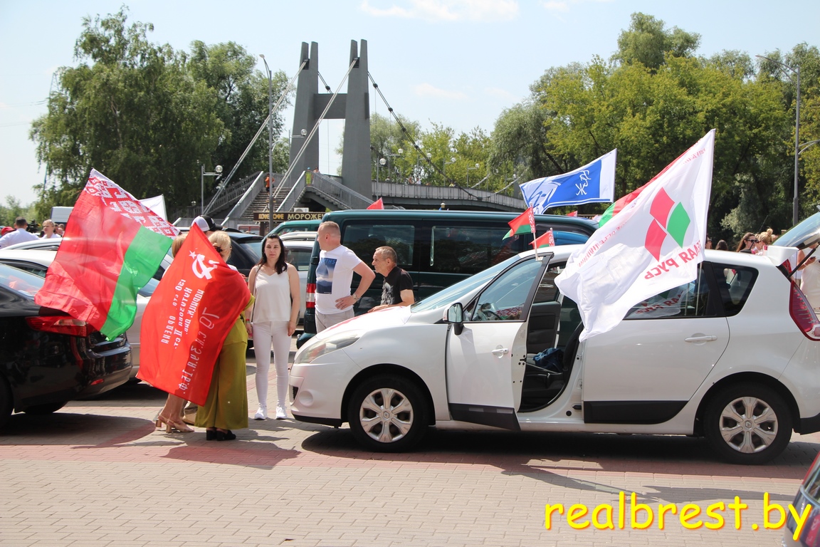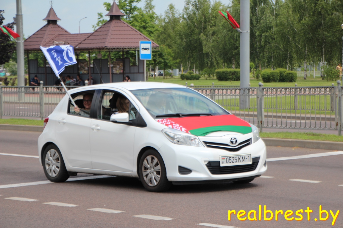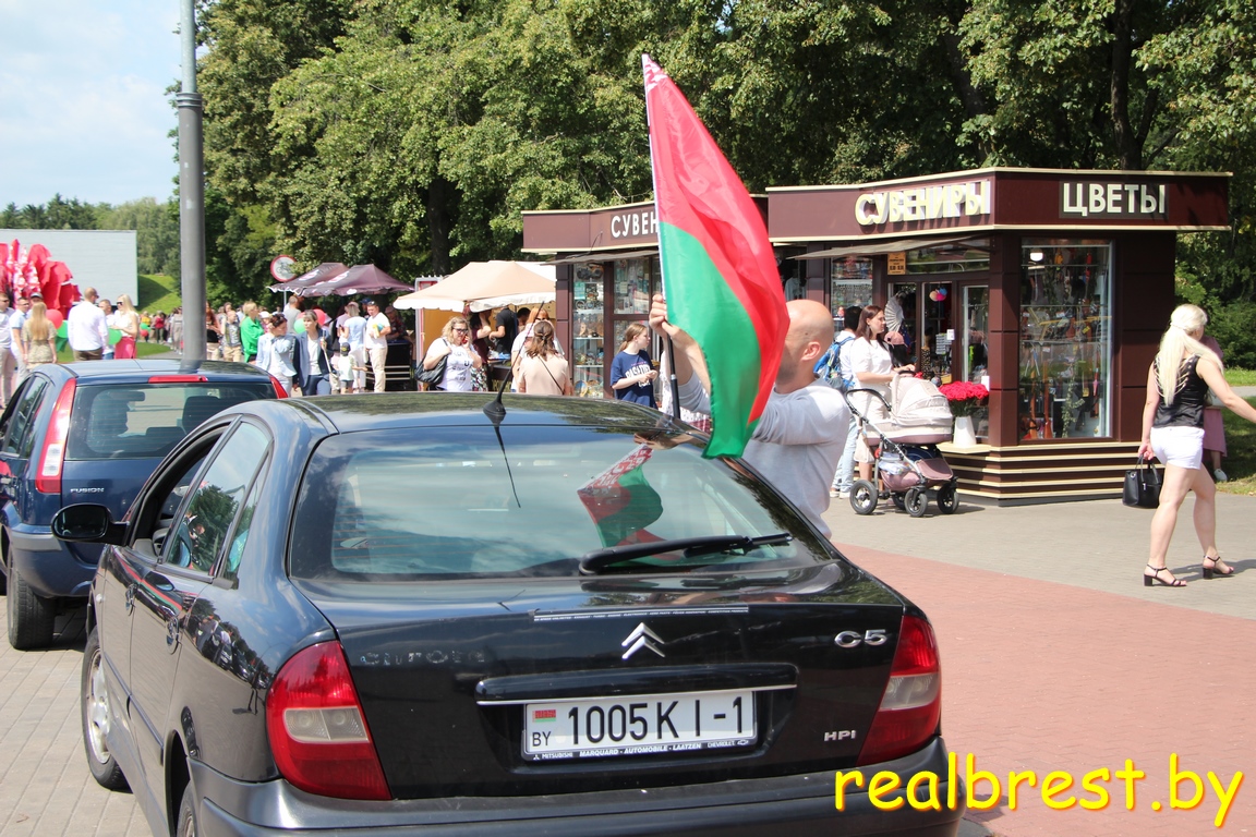 В полдень от стен легендарной цитадели стартовал автопробег к уникальному музею под открытым небом в пригородном поселке Мухавец "Аллея памяти", где собраны возвращенные из Европы демонтированные памятники погибшим на польской территории воинам Красной армии.