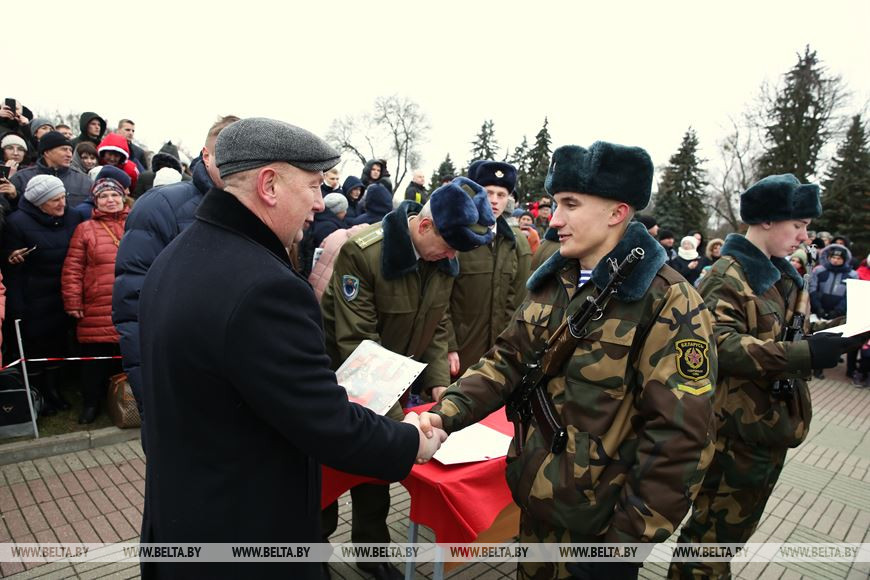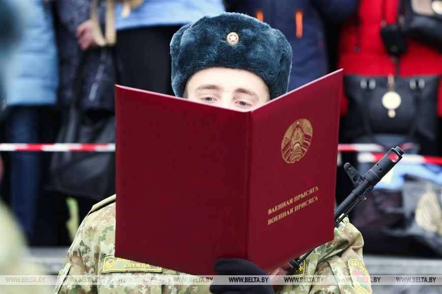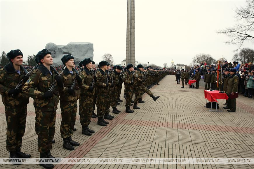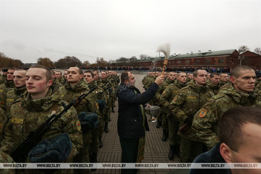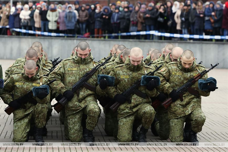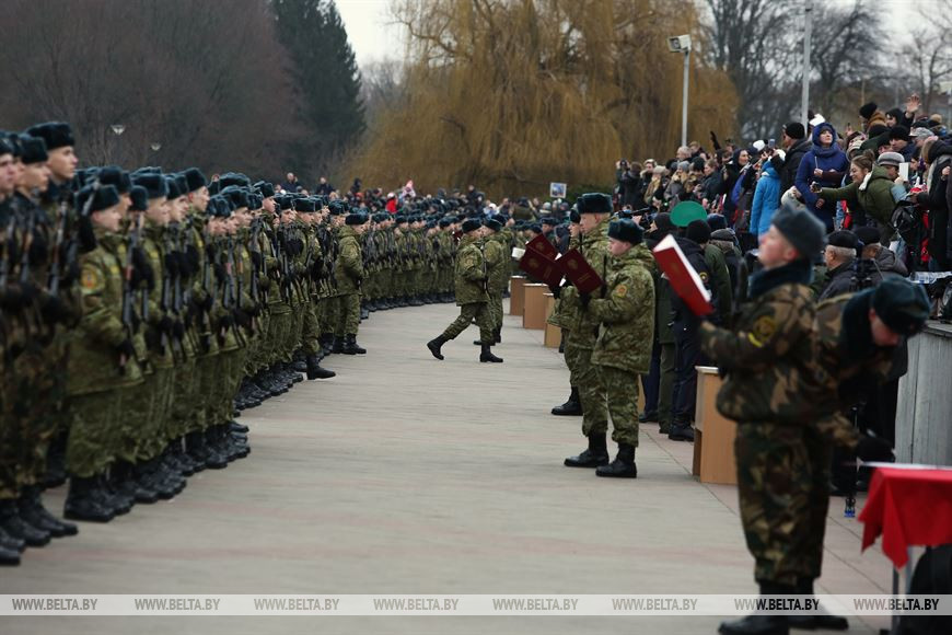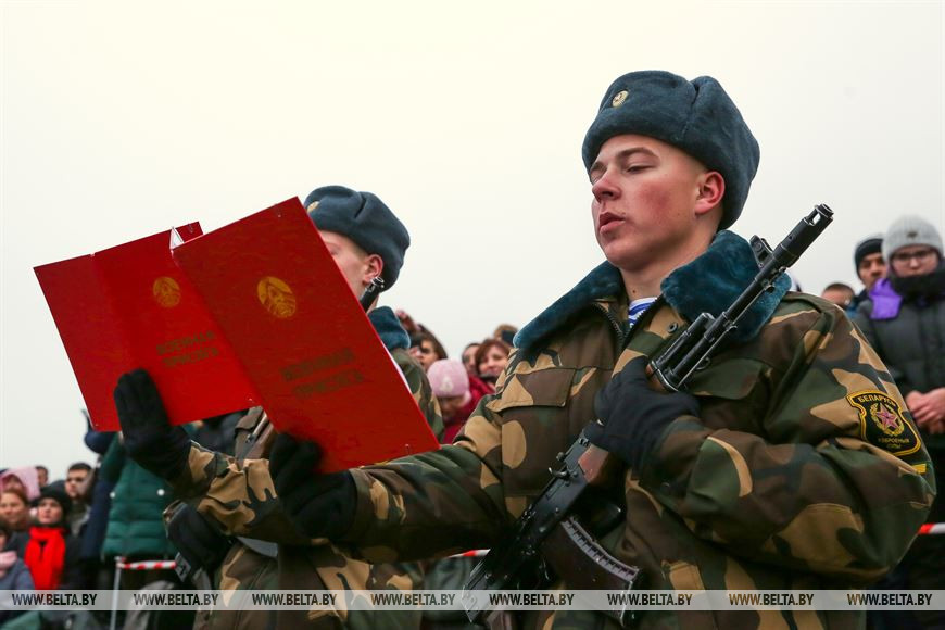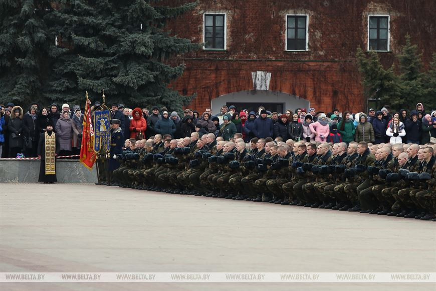 На площади церемониалов в Брестской крепости 14 декабря военнослужащие, впервые призванные на срочную военную службу и службу в резерве, приняли присягу.