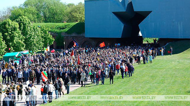 Праздничные мероприятия в Бресте начались с акции "Беларусь помнит!". Руководство области и города, ветераны, представители общественных организаций, трудовых коллективов, молодежь в колонне прошли к мемориальному комплексу. В шествии приняли участие более 9 тыс. человек. Вместе с брестчанами в легендарную цитадель пришли гости областного центра. Присутствующие возложили цветы к Вечному огню и плитам некрополя, почтили память героев минутой молчания. "Сегодня большой праздник, 74 года назад прекратилась кровопролитная война, которая унесла миллионы жизней. Мы должны об этом помнить и сделать все, чтобы в нашей стране был мир", - подчеркнул губернатор.