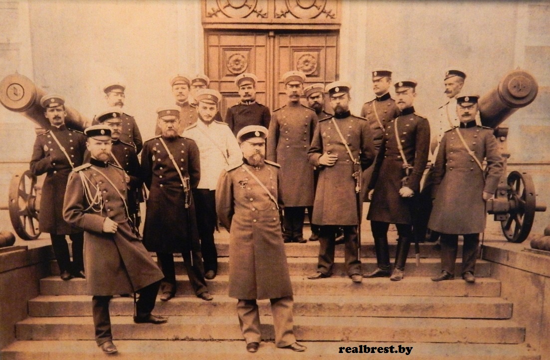 Офицеры Брест-Литовской крепости у главного входа в здание Арсенала, 1895 г.