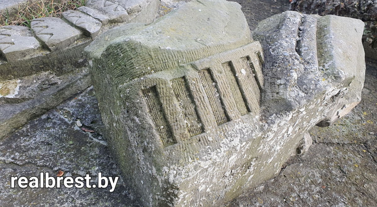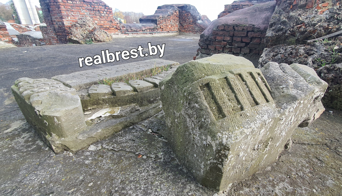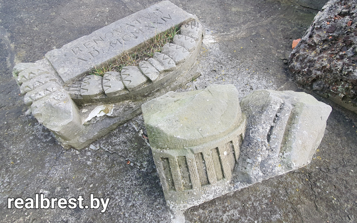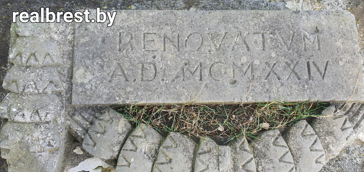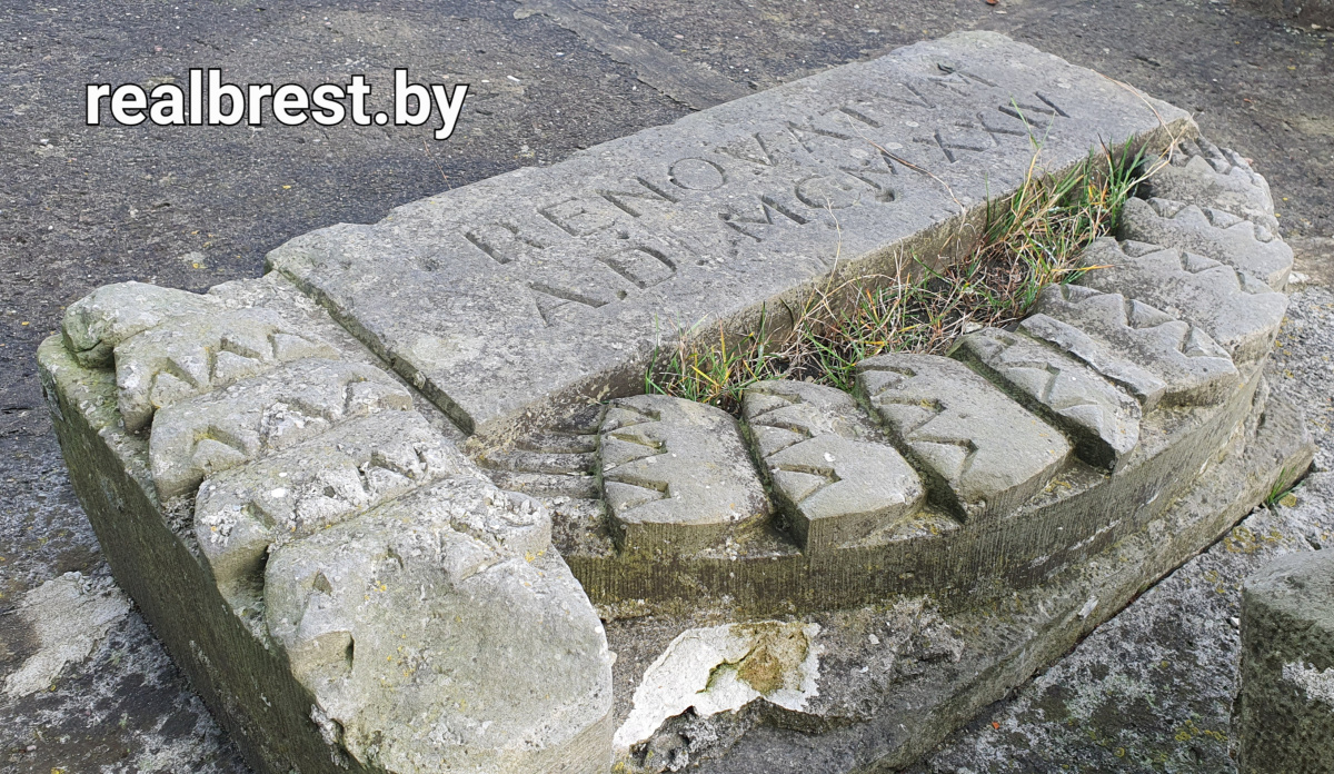 Этот фрагмент декора с надписью на латыни RENOVATUM (перестроение прим.) сохранился недалеко от скульптурной композиции «Мужество», на месте бывшего коллегиума Иезуитов.