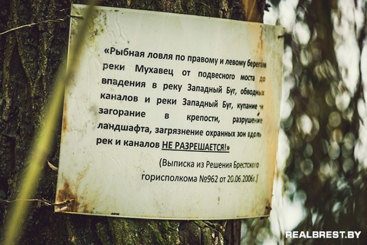 Брестская крепость расположена у слиянии рек Мухавец и Буг. В последние несколько лет участились случаи появления рыбаков в большом кол-ве, на берегах указанных рек, в границах мемориального комплекса Брестская крепость. Хотя, в правилах поведения на территории комплекса ЗАПРЕЩЕНО ловить рыбу, о чем так-же указывают таблички развешенные вдоль берега. На мое обращение к сотруднику комплекса о проблеме рыбаков, был получен ответ, что на этот счет есть решение горисполкома, запрещающий рыбную ловлю на тер. крепости. Работники мемориала не могут ежеминутно патрулировать территорию, для этого есть сотрудники милиции, на чьи плечи возложены эти полномочия.