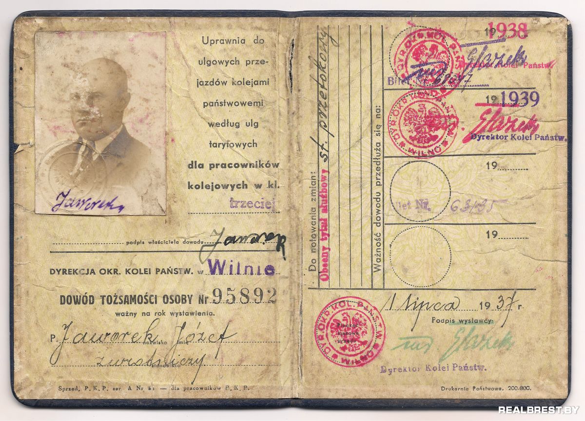 Удостоверение работника железной дороги Юзефа Яворека из семейного архива Юлии Корсунцевой