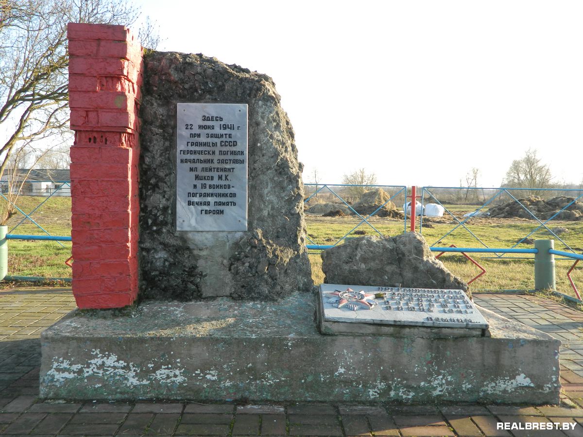 Вскоре немцы, окружив опорный пункт заставы, попытались атаковать его с двух направлений. Но пограничники огнем из стрелкового оружия и гранатами сорвали и эту атаку. Затем немцы подвергли заставу новому артиллерийско—минометному обстрелу. А во второй половине дня, зная, что пограничников осталась небольшая группа, немцы предъявили ультиматум — прекратить сопротивление и сдаться в плен. Когда пограничники отвергли его, немцы пошли в очередную атаку. Имея превосходство в силах, они блокировали группу Ишкова, занимавшую оборону в кирпичном сарае у дома командного состава. Тогда пограничники поднялись в рукопашную. Многие из них погибли в этом бою, погиб и начальник заставы Михаил Куприянович Ишков. Его жена, Евдакия Михайловна, тогда была ранена и умерла в 1946 году. В 1968 году на их могиле был установлен обелиск.