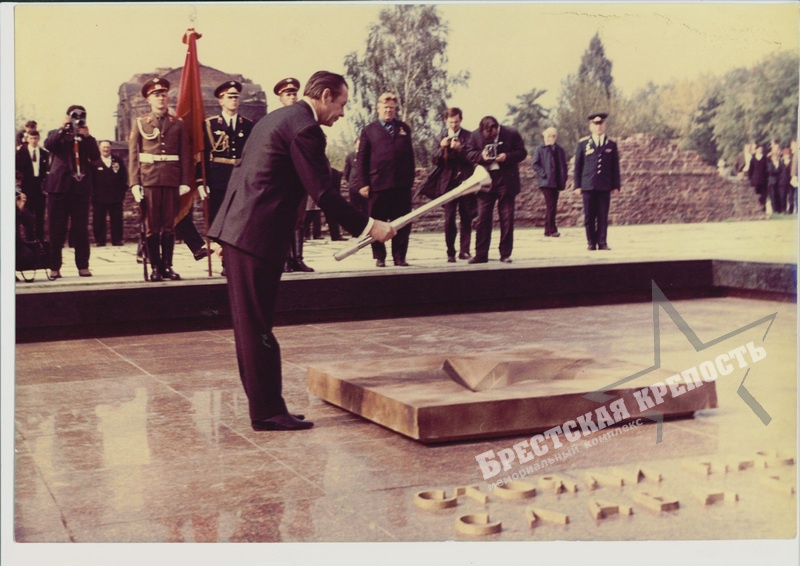 Первый секретарь ЦК КПБ П.М. Машеров зажигает Вечный огонь в Брестской крепости. 25 сентября 1971 г