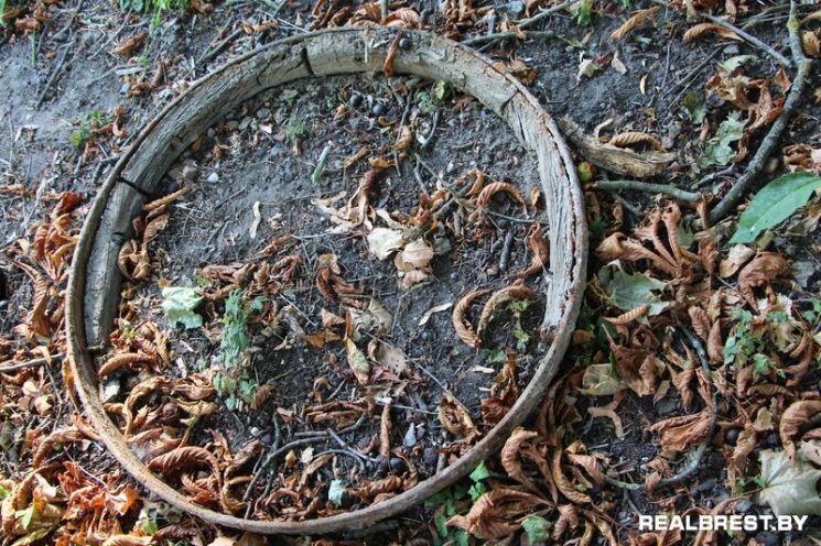 На обмелевшем берегу, если присмотреться, можно найти множество фрагментов истории древнего Берестья, таких как колесо от телеги с деревянными спицами, осколки керамических горшков и какой-то дудочки.