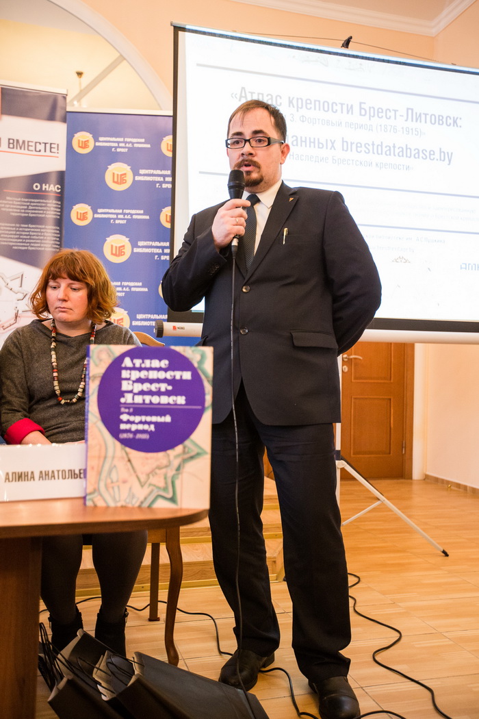 16 февраля в Бресте в Центральной городской библиотеке им. Пушкина Фонд развития Брестской крепости представил профессиональному сообществу и заинтересованной общественности новые источники знаний о наследии Брестской крепости –научно-популярное издание «Атлас крепости Брест-Литовск: «Том 3. Фортовый период (1876-1915)» и электронную базу данных «Наследие Брестской крепости».