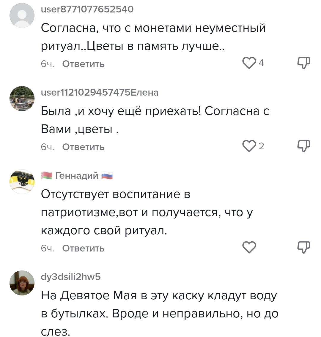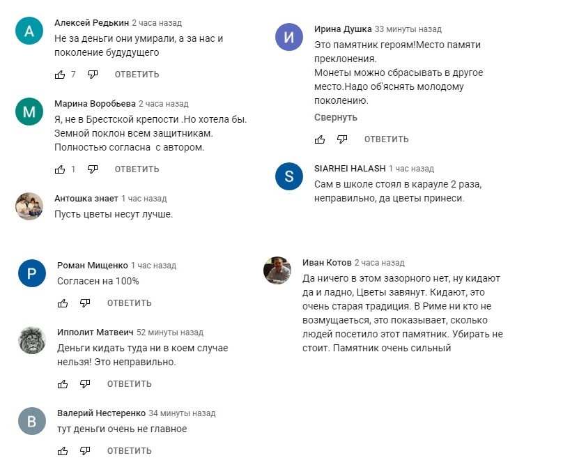 Большинство прокомментировавших данные языческие ритуалы относятся к этому явлению крайне негативно, в едином эмоциональном порыве считающие, что защитники Брестской крепости не заслуживают такого проявления памяти и каска монумента – это не «копилка для мелочи».