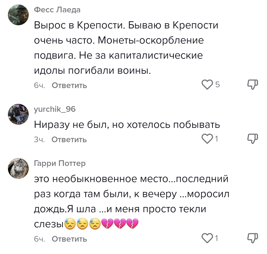 Директор мемориального комплекса «Брестская крепость – герой» подтвердил «Реальному Бресту», что и по сей день монеты посетители бросают в чашу «Вечного огня», а также оставляют их на плитах «Города-герои».