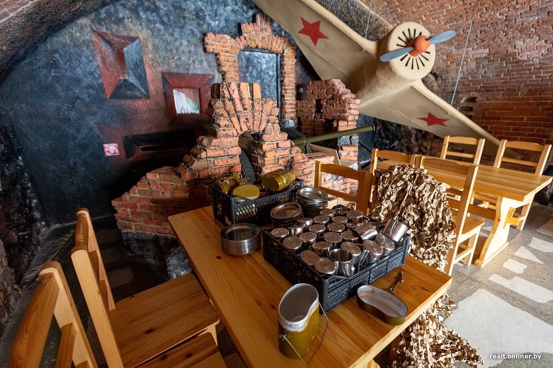 Напомним, заведение в Брестской крепости открылось в 1973 году и называлось «Столовая №18». После развала СССР объект назвали «Цитадель». До сих пор комнаты украшают военные фотографии, агитплакаты и раритеты ушедшей эпохи. Даже посуда — и та со своей харизмой. К слову, для тематических мероприятий жестяные миски и кружки сохранят.