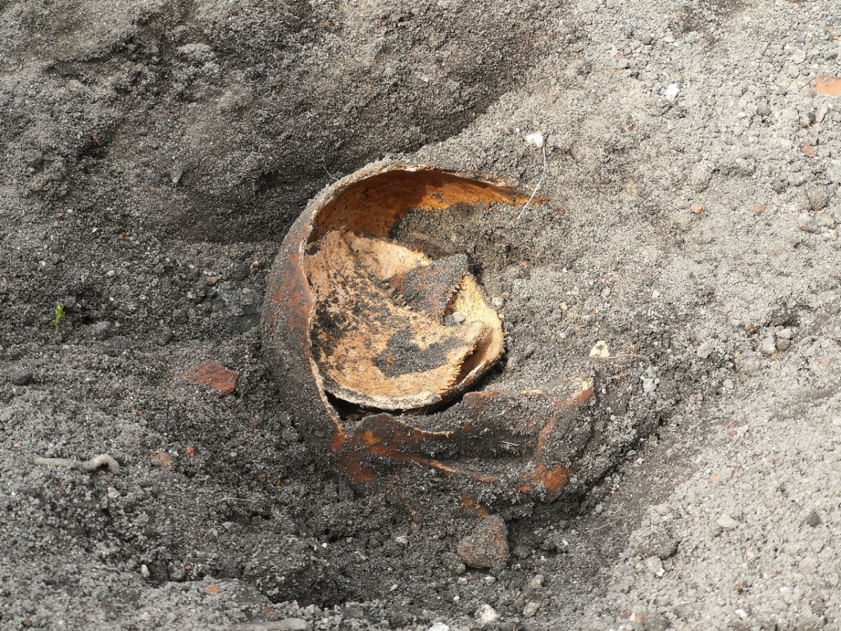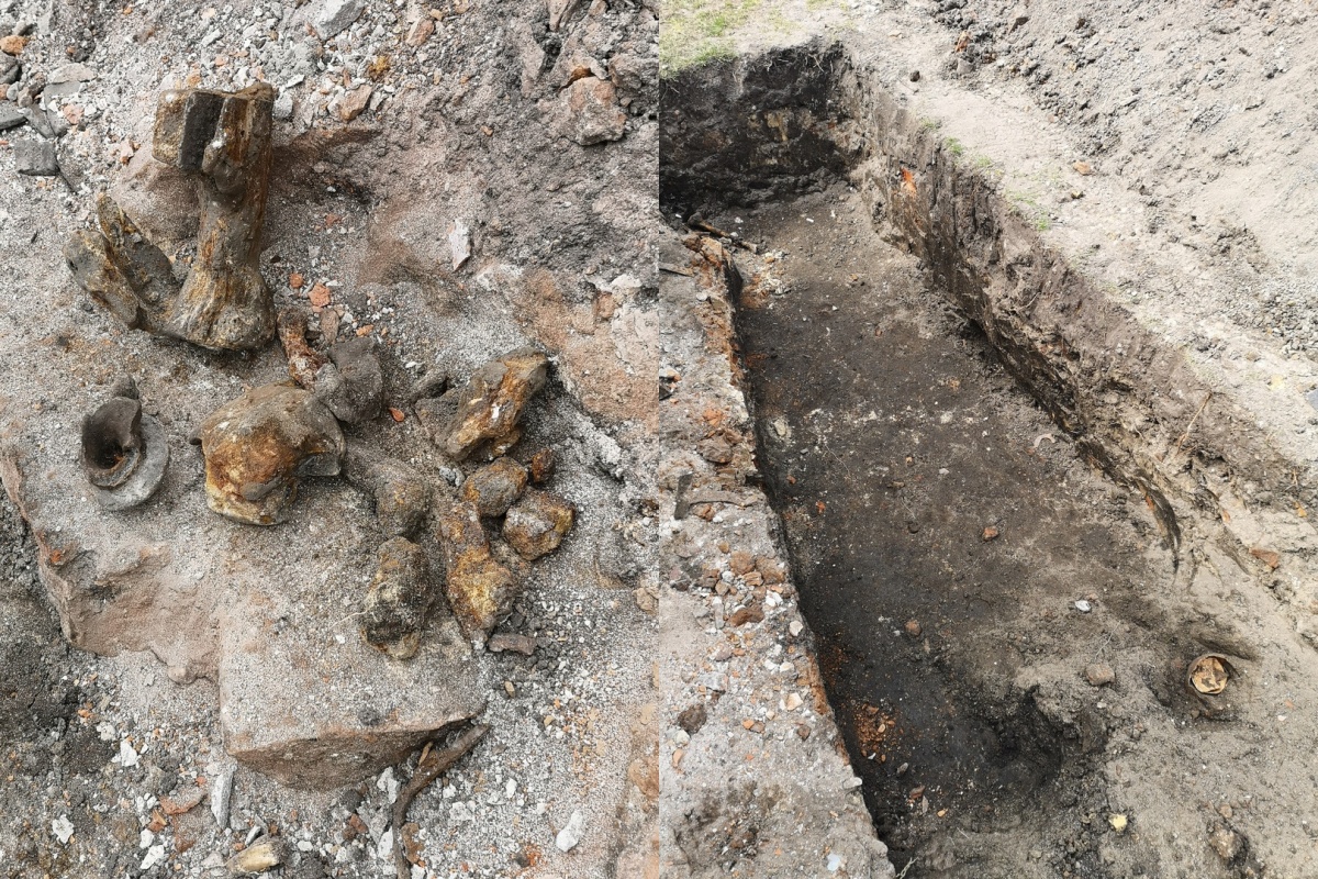 Среди сопутствующих находок - кости животных, хвостовая часть мины и осколки снарядов.
