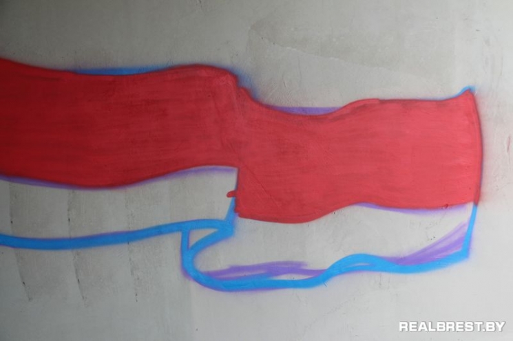 Несмотря на то, что один из местных руководителей БРСМ Петя Пицко заявляет в комментариях на нашем сайте, что никакого запрета на Георгиевские ленты нет, работающие на месте художники, если их можно так назвать, сообщили Реальному Бресту, что на самом деле существует такой запрет и вместо Георгиевских лент на стене будут ленты с цветами флага нашей страны.
