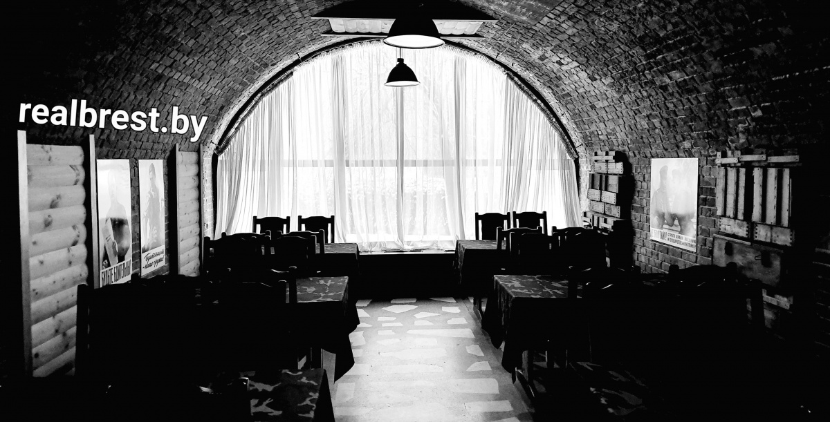 Тогда и появилась необходимость в создании точки общественного питания для туристический групп и гостей комплекса. Было принято решение открыть заведение в обстановке, сочетающейся с общей тематикой мемориала. И самым подходящим для этого местом послужили старые казематы, расположенные вдоль правого рукава реки Мухавец, напротив музея обороны крепости.